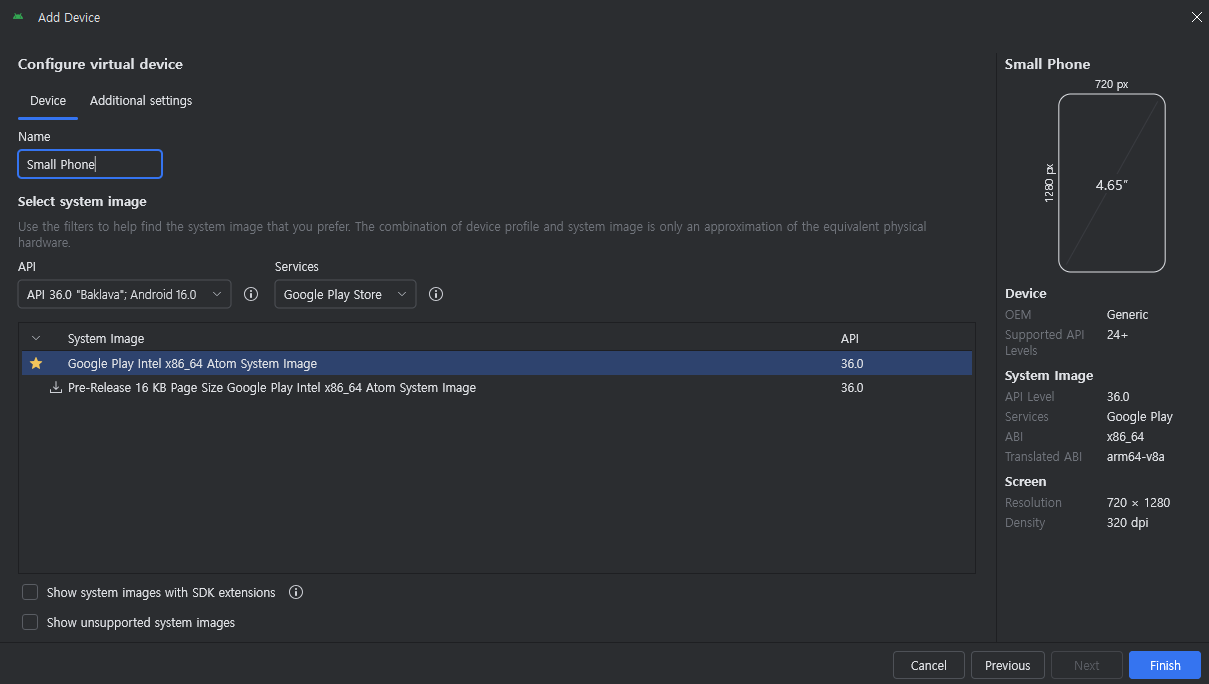 - Create Virtual Device 클릭